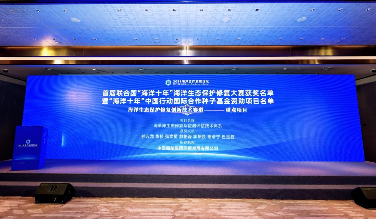 近日,中國船舶集團(tuán)環(huán)境發(fā)展有限公司(以下簡稱“中船環(huán)境”)自主研發(fā)的《海草床生態(tài)修復(fù)及監(jiān)測評估技術(shù)體系》項(xiàng)目,在首屆聯(lián)合國“海洋十年”海洋生態(tài)保護(hù)修復(fù)大賽中脫穎而出,榮獲“海洋十年”中國行動(dòng)國際合作種子基金資助重點(diǎn)項(xiàng)目。中船環(huán)境也是唯一獨(dú)立自主完成海洋生態(tài)保護(hù)修復(fù)創(chuàng)新技術(shù)項(xiàng)目的企業(yè)代表。