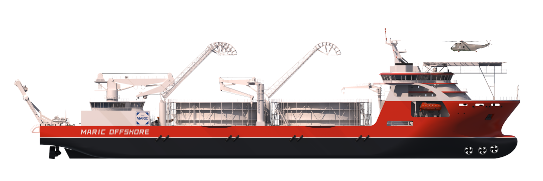 MARIC-CLV 22000海纜施工船采用雙轉盤設計,最大載纜量達22000噸,最大作業水深可達3000米,滿足五級海況下的高效布纜作業。