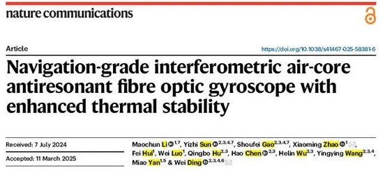 4月14日,中船集團旗下七〇七所和暨南大學等構(gòu)建的深度合作研究團隊,在國際權(quán)威頂級期刊《Nature?Communications》發(fā)表了題為“Navigation-grade interferometric air-core anti-resonant fibre optic gyroscope with enhanced thermal stability”的最新研究成果,實現(xiàn)了空芯光纖陀螺領域的新突破。