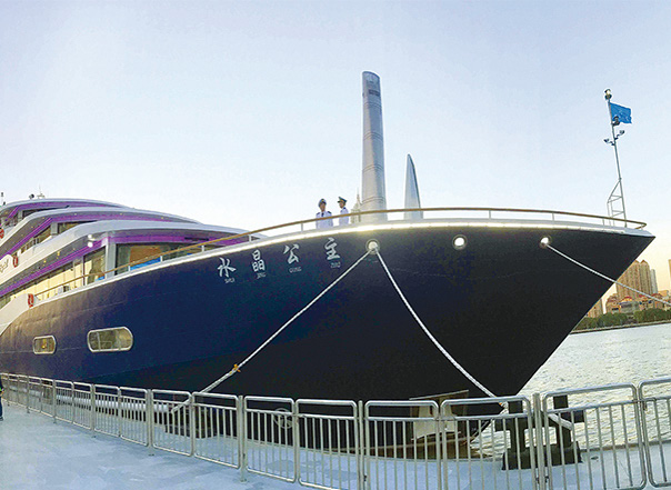 ????近日,七〇二所為上海強生集團有限公司設(shè)計的休閑餐飲觀景船“水晶公主號”停靠黃浦江與游客見面。