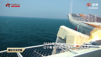 2015年7月,遼寧艦首次組織實彈射擊,取得全部命中的好成績。