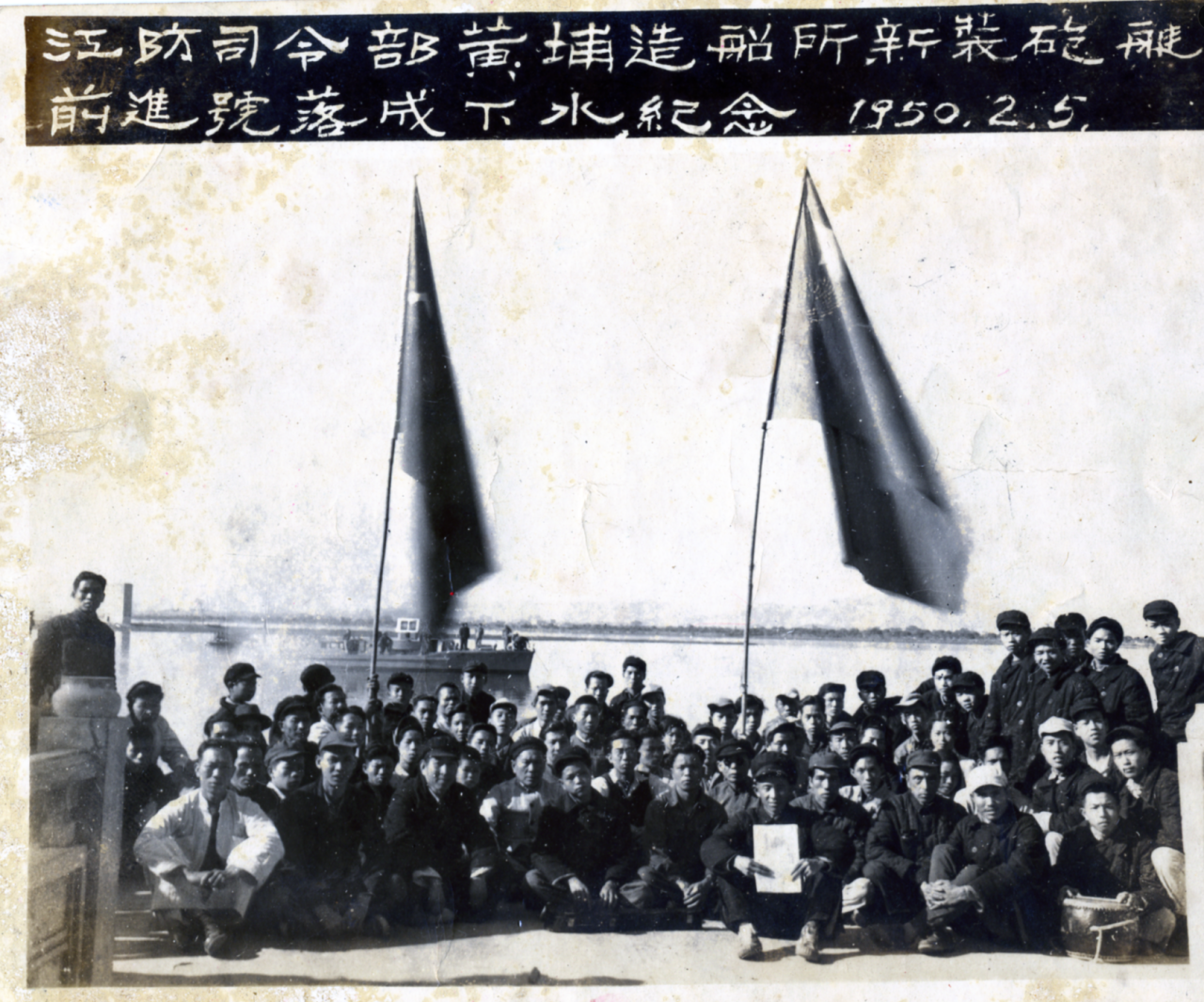 1950年廣州1950年,萬山海戰功臣“前進號”炮艇在工廠下水。