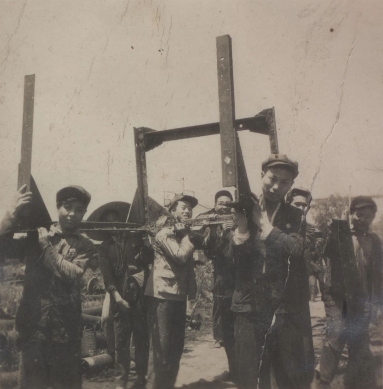 1934年武漢,上世紀30年代,武昌造船成立之初,工人們以手工作業“敲敲打打”形式開展修造船業務。修造的船只大多為100~300噸、鋼肋骨與木殼結構,僅有少量是鋼鉚接船體。建造的船只只能在長江上航行跑跑運輸。為了生存和救國,船廠還建造一些農用機械器具、槍支,以輔助民生、支援抗日。