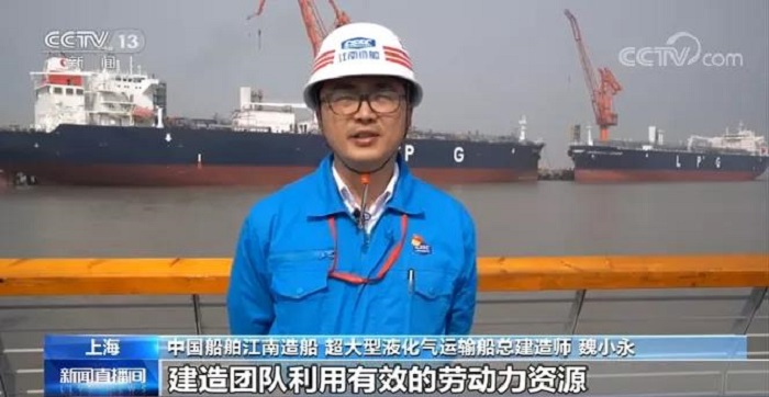 江南造船超大型液化氣運輸船總建造師魏小永:“為了保訂單搶進度,江南造船復工之后5艘大型液化氣體運輸船(VLGC)同時建造,我們排除萬難保節點,建造團隊利用有效的勞動力資源,緊盯每日計劃,大大壓縮了碼頭周期,系泊試驗試航周期,為提前交船打下了堅實基礎?!?