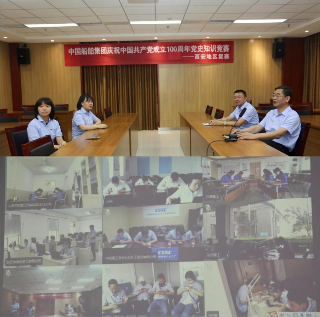 為慶祝中國共產(chǎn)黨成立100周年,扎實(shí)推動黨史學(xué)習(xí)教育,由中國船舶集團(tuán)主辦、集團(tuán)公司黨群工作部指導(dǎo)、中國船舶集團(tuán)黨校承辦的黨史知識競賽自4月中旬起在集團(tuán)公司內(nèi)全面開展。各地區(qū)、各成員單位按要求進(jìn)行了黨史知識競賽籌備以及地區(qū)遴選和復(fù)賽工作。5月27~31日,集團(tuán)公司黨史知識競賽8個賽區(qū)分別組織來自總部和100家成員單位的407名選手,登錄集團(tuán)公司黨校“中船e學(xué)”平臺,通過集中在線測試完成了復(fù)賽。一起來看看精彩瞬間 ——