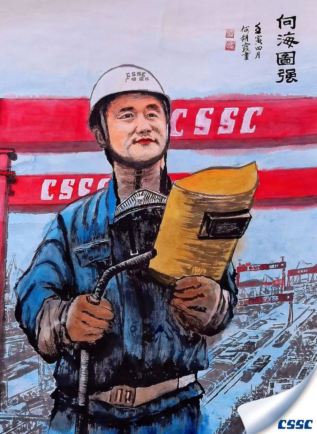 繪畫大師用五彩畫筆將全國五一勞動獎獲得者電焊工馮文虎的形象躍然卷上。