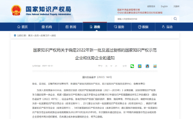 2022年新確定的國家知識(shí)產(chǎn)權(quán)優(yōu)勢企業(yè)