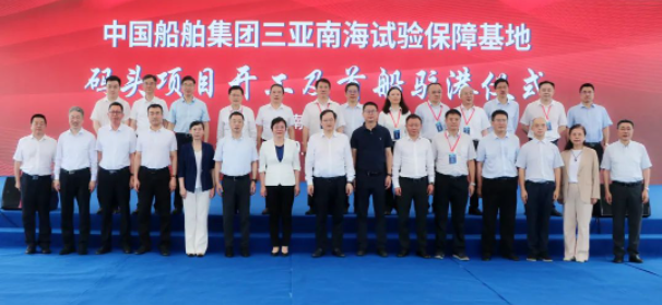 6月14日,中國船舶集團有限公司三亞南海試驗保障基地碼頭項目開工及首船駐港儀式在三亞舉行。中國船舶集團黨組副書記、總經理楊金成出席儀式并宣布項目開工,黨組成員、副總經理盛紀綱出席儀式并致辭,國防科工局系統工程四司副司長蘇懷山,海南省副省長謝京,三亞市委常委、常務副市長盛勇軍出席儀式。