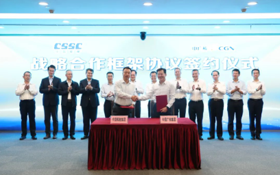 11月3日,中國船舶集團(tuán)有限公司與中國廣核集團(tuán)有限公司在上海簽訂戰(zhàn)略合作協(xié)議。中國船舶集團(tuán)黨組副書記、總經(jīng)理?xiàng)罱鸪桑袕V核黨委副書記、總經(jīng)理高立剛出席簽約儀式。中國船舶集團(tuán)黨組成員、副總經(jīng)理盛紀(jì)綱,中廣核黨委常委、副總經(jīng)理龐松濤分別代表雙方在協(xié)議上簽字。簽約前,雙方觀看了兩家企業(yè)宣傳片,并就進(jìn)一步加強(qiáng)溝通交流、深化多領(lǐng)域合作進(jìn)行了深入探討。