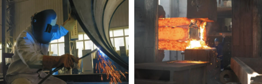 施工現(xiàn)場(chǎng)焊花飛舞、壓機(jī)轟鳴