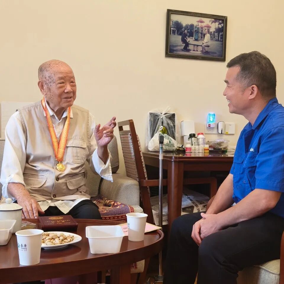 賈海英在焦英杰家中與其促膝交談,悉心詢問他的身體狀況和生活情況,專注聽他講述抗戰時期的崢嶸歲月,頻頻點頭回應并追問細節,衷心地感謝他在抗戰時期作出的巨大犧牲和貢獻,并祝愿他身體健康、福壽綿長;同時,叮囑總部各部門及相關單位要及時關心、了解抗戰老兵的生活和工作情況,使大家真切感受到集團公司黨組的關懷與溫暖。