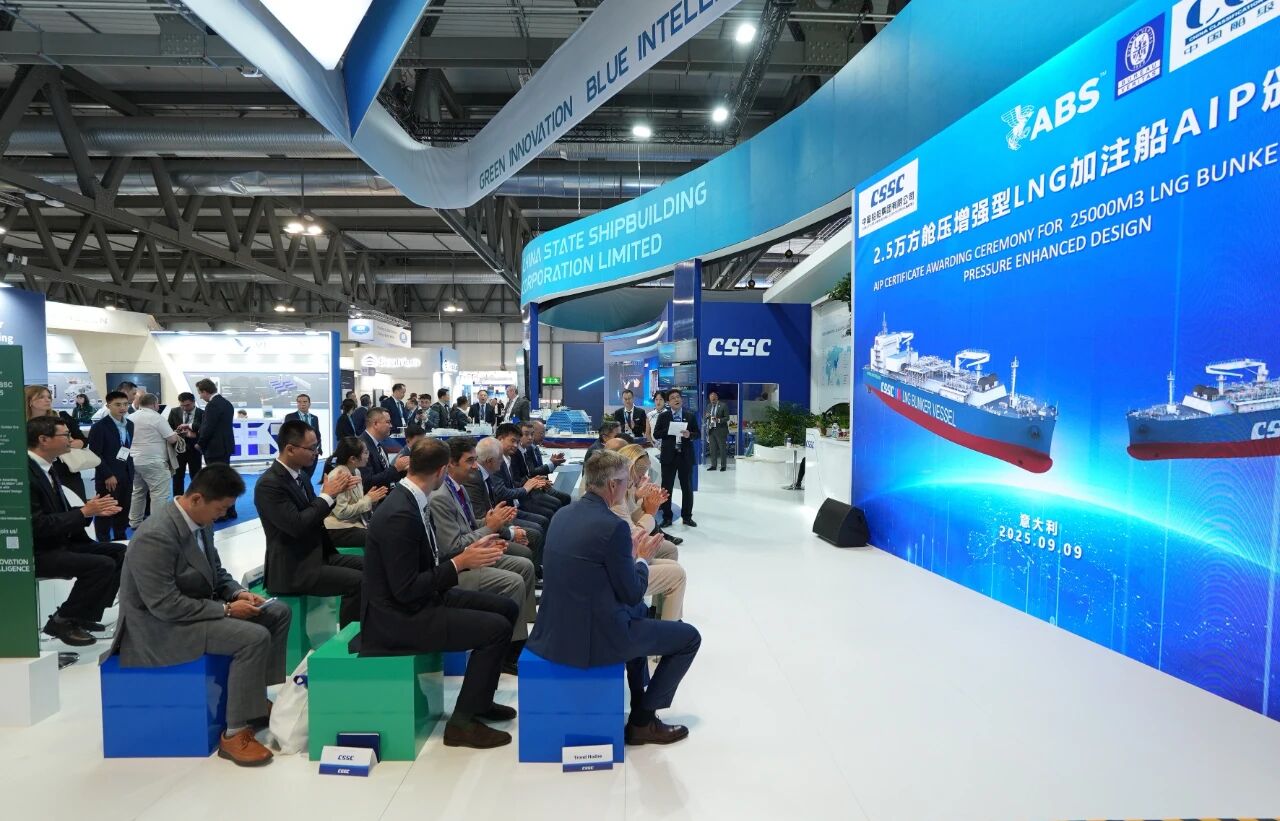開展當(dāng)天,中船集團(tuán)舉辦江南造船五項革新船舶解決方案的AiP頒證儀式、滬東中華2.5萬立方米艙壓增強型LNG加注船AiP頒證儀式等專題活動,吸引了眾多國際船東、船級社、設(shè)備廠商等到場觀摩,與參展二級管理單位交流市場最新熱點并探討未來合作機遇。展會期間,中船集團(tuán)還將組織舉辦 “全球服務(wù)網(wǎng)絡(luò)”說明推介會等多場市場開發(fā)專題活動,精準(zhǔn)高效開展技術(shù)產(chǎn)品服務(wù)推介和品牌海外推廣。