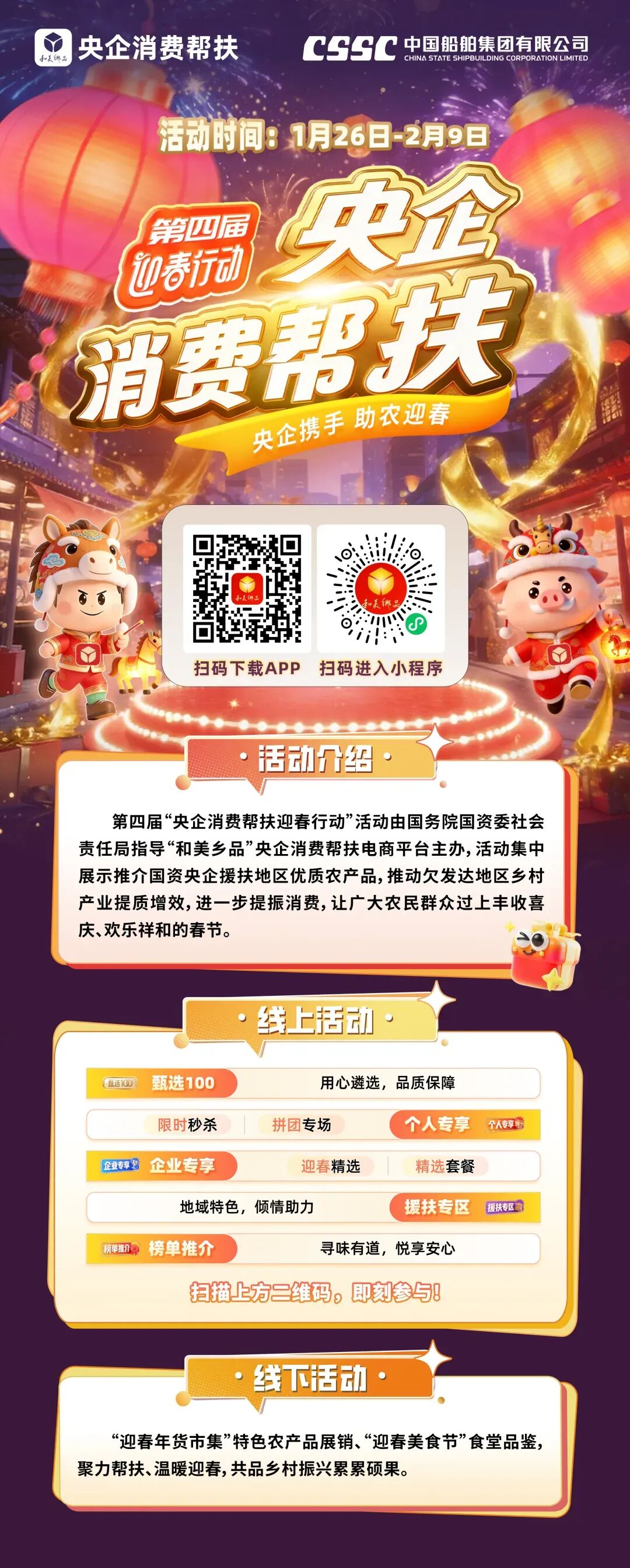 為深入貫徹黨中央、國務院關(guān)于消費幫扶的決策部署,落實國資委相關(guān)工作要求,中船集團積極組織參與2026“央企消費幫扶迎春活動”,以消費幫扶持續(xù)鞏固拓展脫貧攻堅成果、助力鄉(xiāng)村振興,鼓勵各單位及員工踴躍參與,推動幫扶地區(qū)群眾穩(wěn)定增收,讓廣大農(nóng)民群眾共享發(fā)展成果、歡度新春。