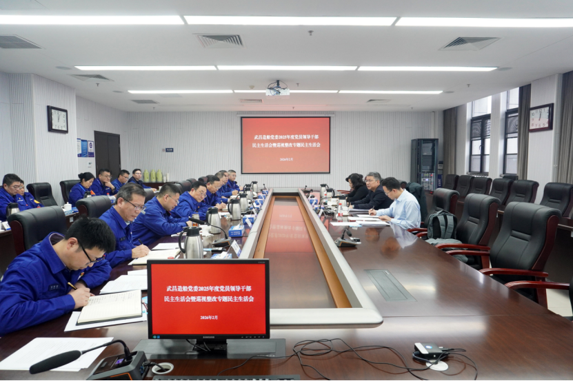 武昌造船黨委召開2025年度黨員領導干部民主生活會。中船集團黨組成員、總會計師朱永紅到會指導并點評。