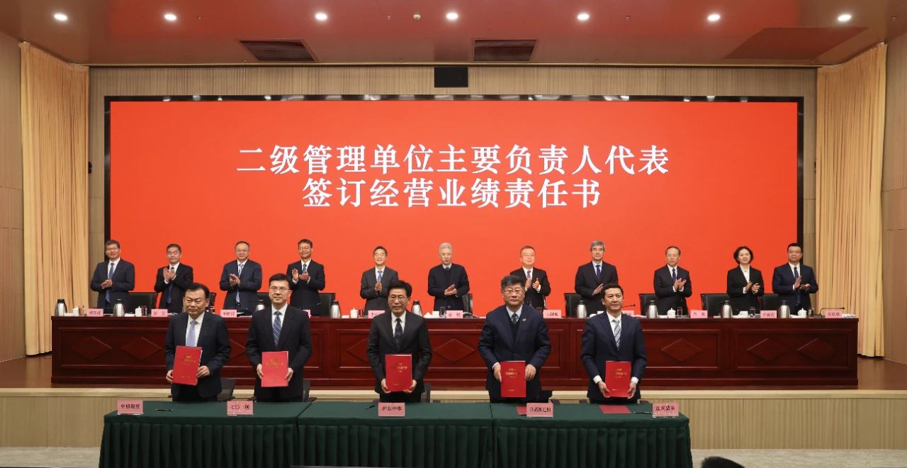 會議對2024年度中船集團重大貢獻獎、民品貢獻獎、科技貢獻獎和個人貢獻獎進行了表彰。徐鵬與二級管理單位主要負責人代表簽訂了2025年經營業績考核責任書。與會人員分組討論了工作報告,五家二級管理單位作了現場交流發言。