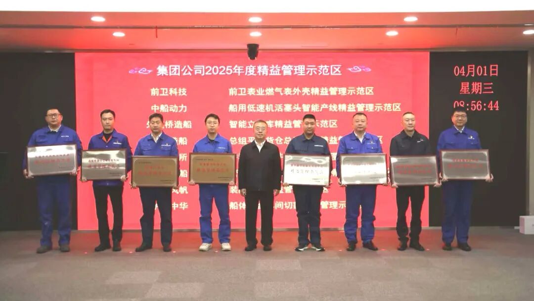 會上,王國強為中船集團2025年度精益管理示范區授牌。經濟運行部介紹集團公司精益管理工作推進情況,外高橋造船、中船動力、中南裝備、江南造船作精益管理工作情況交流。