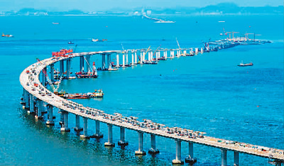 港珠澳大橋主體工程全線貫通,是中國橋梁屹立世界“橋梁之巔”的縮影。世界最長跨海大橋、跨度最大的公鐵兩用橋、首座公鐵兩用跨海大橋……近年來,中國橋梁界為世界橋梁創造了眾多的“世界第一”。數據顯示,目前世界排名前10位的跨海長橋中,中國占據6座。而在建造技術上,中國已擁有千米級斜拉橋設計施工成套技術、跨海特大跨徑鋼箱梁懸索橋關鍵技術等多項尖端技術。