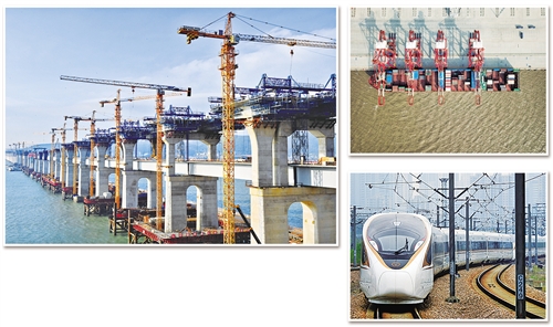 圖① 平潭海峽公鐵兩用大橋是我國(guó)第一座公鐵兩用跨海峽大橋。圖為平潭海峽公鐵兩用大橋正在加緊施工。 新華社 張國(guó)俊攝