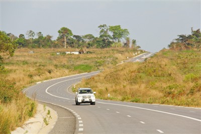 有助于推動剛果(布)經(jīng)濟社會發(fā)展。圖為汽車行駛在寬闊的剛果(布)國家一號公路上。(李 志偉攝)