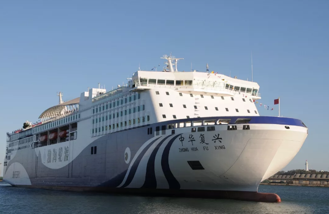 ????“中華復(fù)興”號總長212米,型寬28.6米,總噸4.4萬,裝載車道長度3070米,3層車輛艙,服務(wù)航速18.8節(jié),最大續(xù)航力5000海里。 擁有雙套船舶動力系統(tǒng)、雙電源系統(tǒng)、雙套滅火系統(tǒng),有良好的設(shè)計穩(wěn)性和船體強度,滿足減振降噪、節(jié)能環(huán)保等最新國際規(guī)范要求。 載客定額為1689人,客房全部采用等級艙位,設(shè)有大型多功能演藝廳、兒童游樂區(qū)、購物中心、影院等娛樂休閑場所,集旅行、休閑、娛樂于一體,為旅客帶來郵輪般體驗。