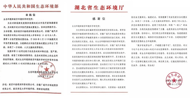 ????近日,國家生態(tài)環(huán)境部、湖北省生態(tài)環(huán)境廳分別發(fā)出表揚(yáng)信和感謝信,對中國船舶集團(tuán)所屬中船綠洲等在疫情防控期間作出貢獻(xiàn)的單位給予高度贊揚(yáng),表示衷心的感謝,并對包含中船綠洲旗下環(huán)保公司陳紀(jì)賽、陳良義、王小峰、周浩在內(nèi)的13名生態(tài)環(huán)境“鐵軍”提出表揚(yáng)。