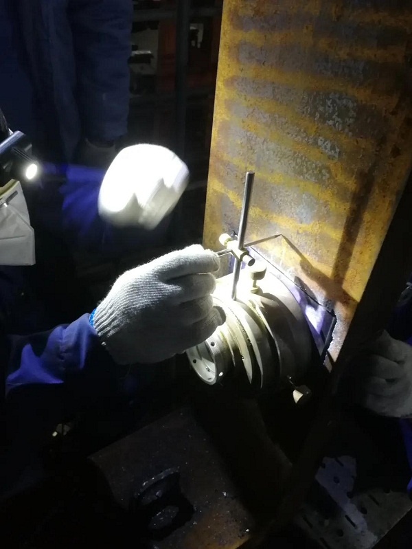 為確保VLCC照光工作順利完成,大船集團輪機工藝小組,提前一周就進入“作戰”狀態,他們每天堅持深入現場,從細小處入手,檢查每一個可能影響軸舵系施工質量的隱患,加班加點成了工作的常態。