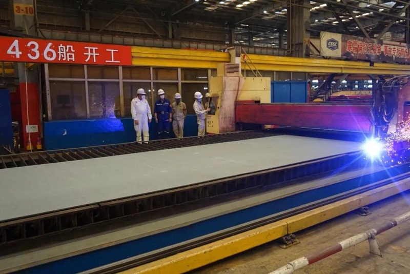 ????5月19日,中國船舶集團旗下外高橋造船為PTM公司建造的11.4萬噸阿芙拉油輪2號船H1436船順利開工。本項目也是繼5月12日首制船H1435船順利開工時隔一周后雙方再度攜手合作實現(xiàn)的又一重要節(jié)點。受疫情影響,船東駐廠組代表無法到場,委托美國船級社(ABS)代表驗收開工鋼板情況見證鋼板切割并以“云簽字”的形式,簽署開工節(jié)點證書。