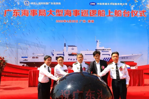 △ 4月28日,七〇一所設計的廣東海事局大型海事巡邏船上船臺。