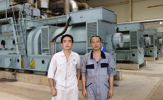 幾內(nèi)亞電站現(xiàn)場地處偏僻荒涼的山區(qū),缺乏起重用的吊車,只能靠肩扛人抬,效率很低。面對困境,尹旭明迎難而上,創(chuàng)造性地開展工作,經(jīng)常加班加點(diǎn)工作,解決了包括電機(jī)軸承溫度波動、磨損、機(jī)組振動大對底座高速的干擾等很多棘手問題。經(jīng)過3個月的頑強(qiáng)奮戰(zhàn),4臺機(jī)組現(xiàn)在已經(jīng)投入正常運(yùn)行,滿足了客戶驗(yàn)收生產(chǎn)節(jié)點(diǎn)要求,為公司樹立了良好的品牌形象。
