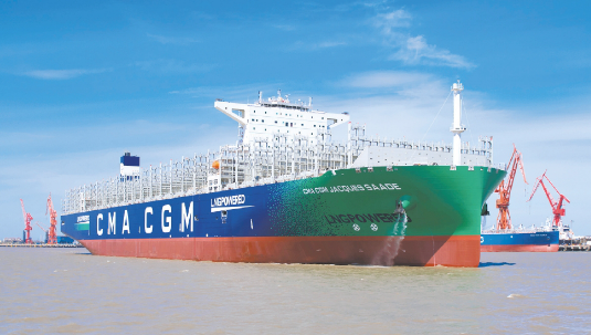 ——2020年9月,自主建造交付世界上首艘以LNG 為主要動力的噸位最大、集成世界最先進技術、環保性能最優的23000TEU雙燃料動力集裝箱船“達飛雅克·薩德”號,并實現批量交付,進一步鞏固了滬東中華在超大型集裝箱船建造領域的行業領軍地位。這艘被譽為海上“綠巨人”的雙燃料動力集裝箱船,備受業界廣泛關注,她的成功建成交付是我國船舶工業高質量發展取得的重要成果,彰顯了滬東中華雄厚的建造實力,也標志著中國船舶集團在世界大型集裝箱船領域成功實現從跟隨到引領。