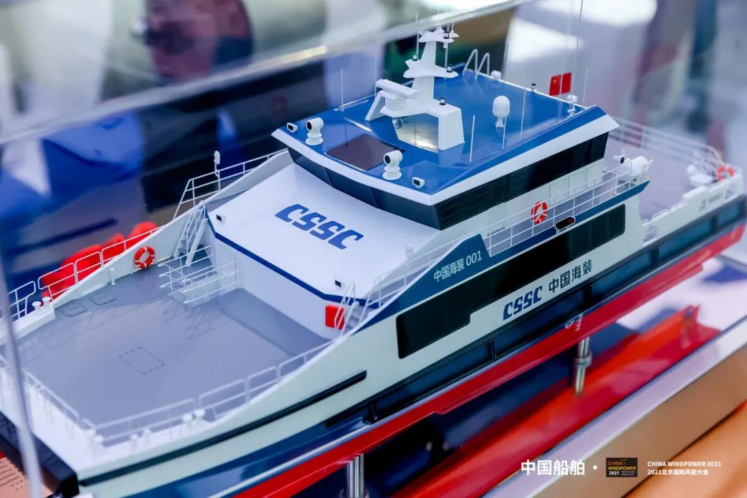 在本屆風能大會上,中國海裝與遠舟科技聯合設計制造的國內首艘30米級專業風電運維船發布。投運后,該船將與中船海工101海上風電安裝平臺一道,為海上運維“保駕護航”。