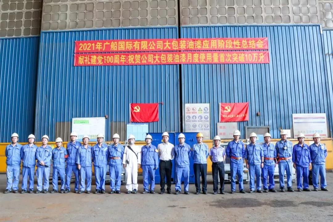 2021年,綠色噴涂技術(shù)在廣船國際首次實現(xiàn)規(guī)模化應(yīng)用,并先后在造船碼頭、薄板生產(chǎn)線和涂裝工棚等多個場景得到全面推行。統(tǒng)計數(shù)據(jù)顯示,廣船國際采用綠色噴涂技術(shù)共噴涂油漆70萬升,使危廢和VOCs減少199噸、生產(chǎn)成本降低266萬元、碳排放減少840噸。此舉不僅大大改善了工人的作業(yè)環(huán)境,還有效降低了工人的勞動強(qiáng)度,也為下一步探索涂裝施工自動化解決了關(guān)鍵技術(shù)難題。
