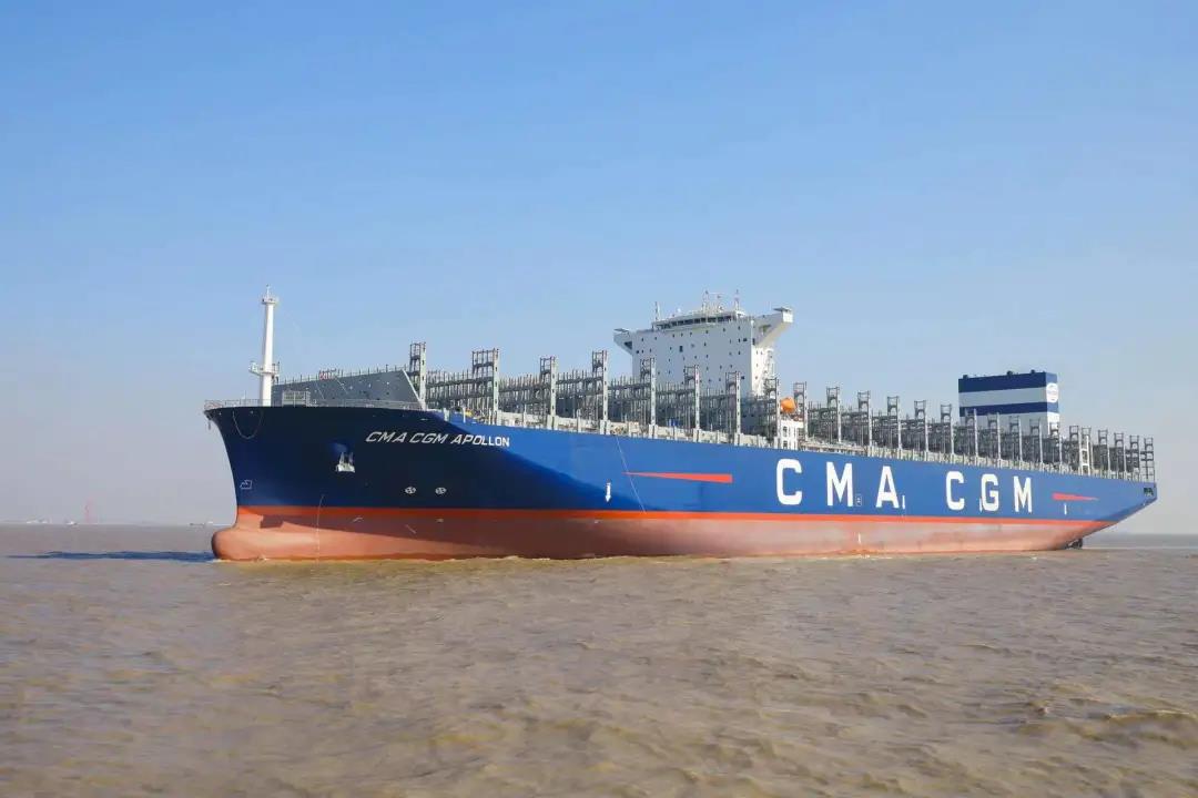 1月4日,新年第一個工作日。滬東中華聯合中船貿易為法國達飛海運集團建造的第四艘15000TEU超大型集裝箱船系列船“達飛·阿波羅”號在上海命名交付。