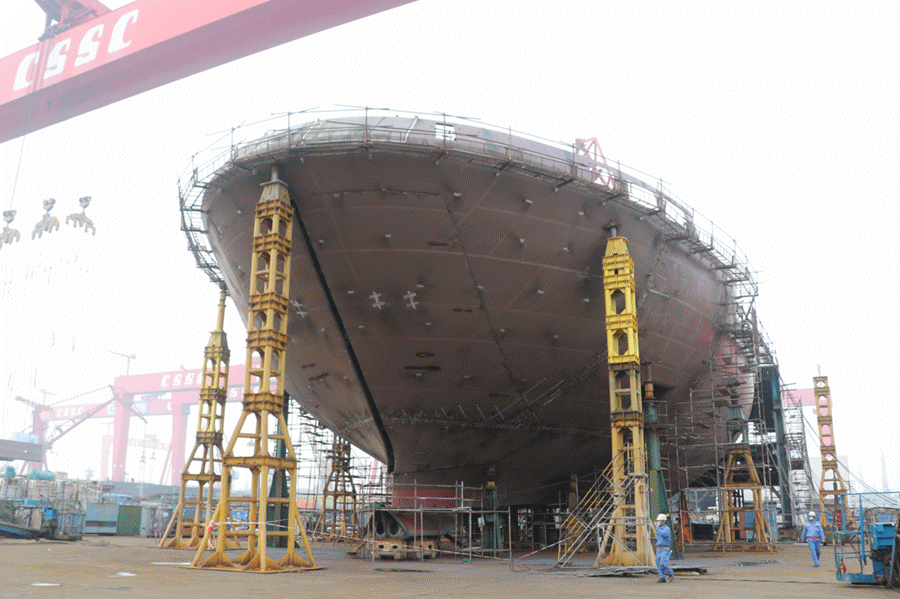 廣船國際總裝部集中精銳力量,與船東、船檢密切配合,克服了疫情影響,實現了艏部總段的快速成型,為艏門開啟提供了條件。