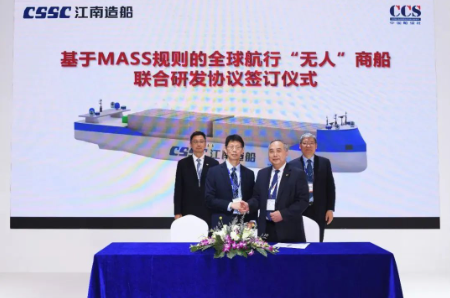 此外,與中國船級(jí)社簽訂面向MASS(海上自主水面船舶)規(guī)則應(yīng)用的全球航行“無人”商船聯(lián)合研發(fā)協(xié)議。