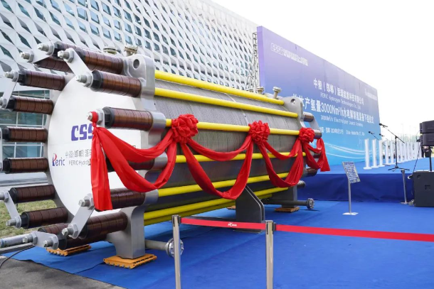 該裝備圍繞我國氫能高質(zhì)量發(fā)展重大需求,突破了大功率、高電密、寬負載、低電耗等多項前沿技術(shù),實現(xiàn)了單體產(chǎn)氫量由2000Nm3/h到3000Nm3/h的跨越,運行電流密度提升17%,槽體重量降低13%,制氫系統(tǒng)具備30%-110%的動態(tài)調(diào)節(jié)能力,能耗達到國標(biāo)一級能效標(biāo)準(zhǔn),可顯著提高單機產(chǎn)能、降低生產(chǎn)投入和運行成本,為大規(guī)模綠氫制取提供了創(chuàng)新型解決方案。