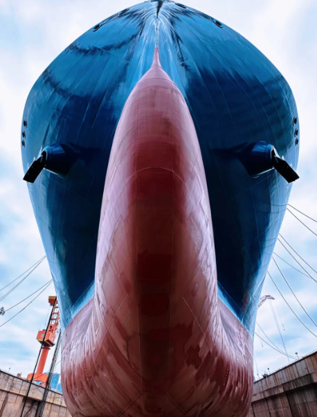 # 通過采用新型雙艉鰭線型,配備空氣潤滑系統,進一步提升了水動力性能,增強了推進系統安全冗余;
