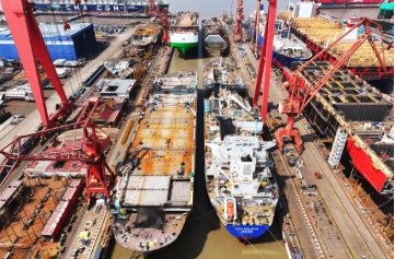 8月11日,中國船舶集團旗下江南造船4號船塢迎來一艘99000立方米超大型乙烷乙烯運輸船(VLEC)和一艘7800車位汽車運輸船(PCTC)出塢 ,一艘99000立方米VLEC半船和一艘7800車位PCTC半船同步起浮,達成了“PV同步”建造模式的首批次出塢。