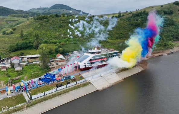 “天河一號(hào)”在東北地區(qū)內(nèi)河游覽船領(lǐng)域創(chuàng)下了多個(gè)“之最”:投資金額最大、噸位最大、載客人數(shù)最多、推進(jìn)功率最高、服務(wù)功能最齊全。作為吉林省首艘混合動(dòng)力綠色新能源船舶,同時(shí)也是首艘超過500客位的大型游覽船,“天河一號(hào)”的亮相為松花江增添了一道亮麗的風(fēng)景線。