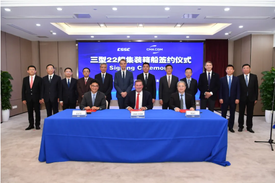 3型22艘綠色集裝箱船簽約,中國船舶集團喜獲歷史最大單筆集裝箱船訂單。