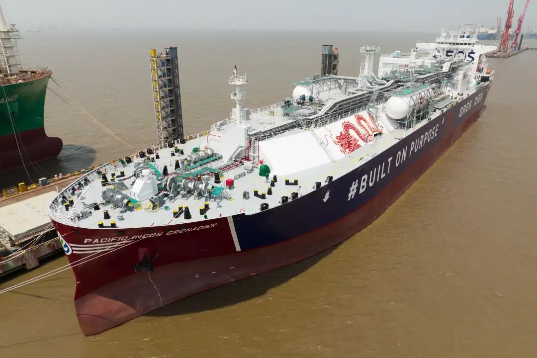 5月16日,中國船舶集團旗下江南造船為浦銀租賃和山東海洋集團下屬太平洋氣體船(香港)控股有限公司(PACIFIC GAS)建造的99000立方米B型艙超大型乙烷運輸船(VLEC)“PACIFIC INEOS GRENADIER”號交付。