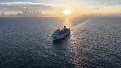 愛達·魔都號在大海上畫“∞”。