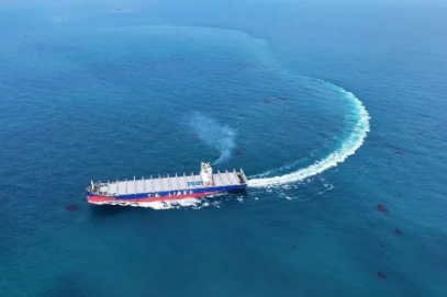 3月20日,外高橋造船同日完成兩大生產(chǎn)節(jié)點(diǎn),為TS Lines公司建造的第二艘7000TEU集裝箱船H1578試航凱旋,為RCL公司建造的首制7000TEU集裝箱船H1380開(kāi)始出海試航。
