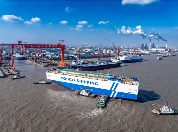 2月8日,中船集團旗下外高橋造船一號船塢傳來喜訊。為希臘Oceangold公司建造的首制11.4萬噸阿芙拉型成品油船和為中信金融租賃公司建造的第二艘8600車滾裝汽車運輸船(PCTC)提前2天實現出塢節點。