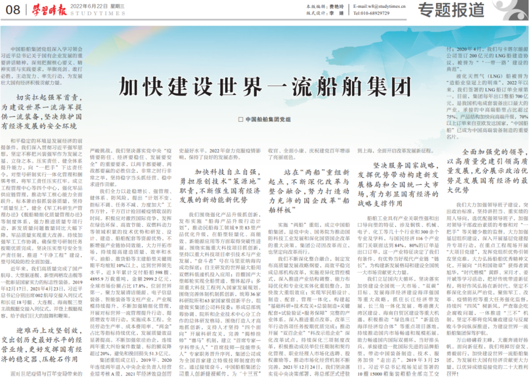 學習時報發表中國船舶集團黨組署名文章——加快建設世界一流船舶集團
