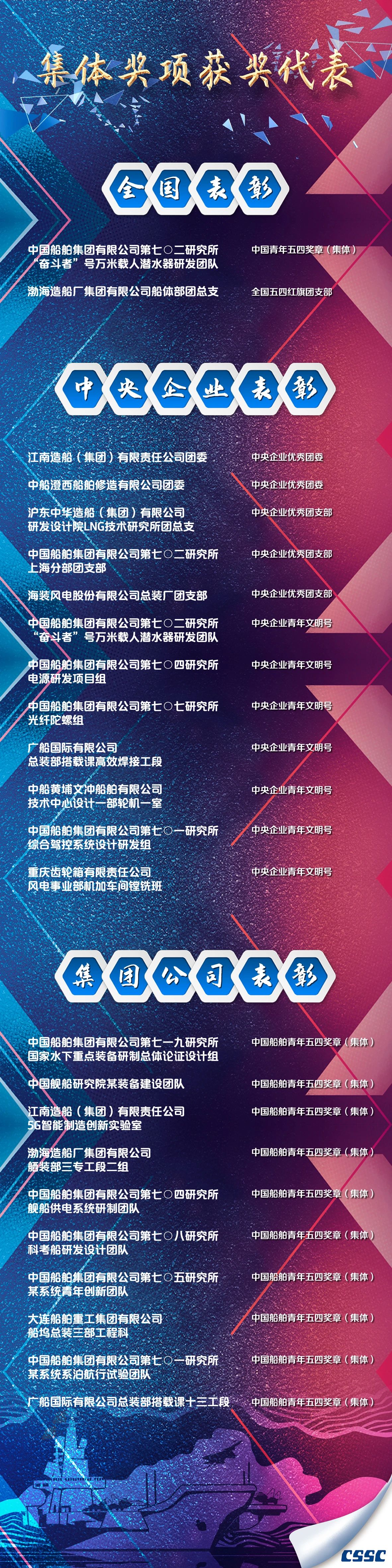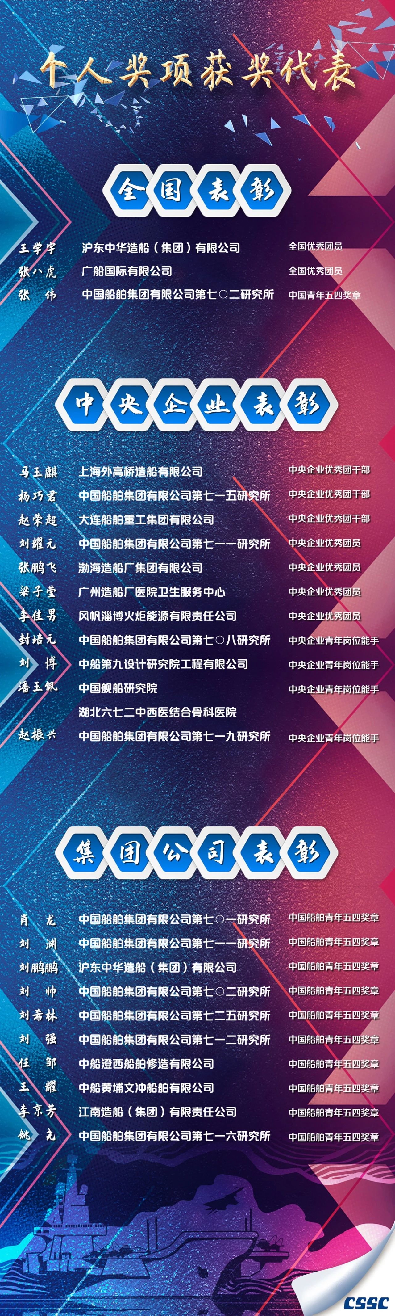 有的在生產(chǎn)一線不畏艱難、埋頭苦干,有的在服務(wù)集團發(fā)展的最基層不計得失、任勞任怨。他們把個人理想融入世界一流船舶集團的偉大事業(yè)中,書寫著新時代的青春答卷,彰顯著新時代青年的責(zé)任與擔(dān)當(dāng),為船舶青年作出了榜樣,樹立了標(biāo)桿。