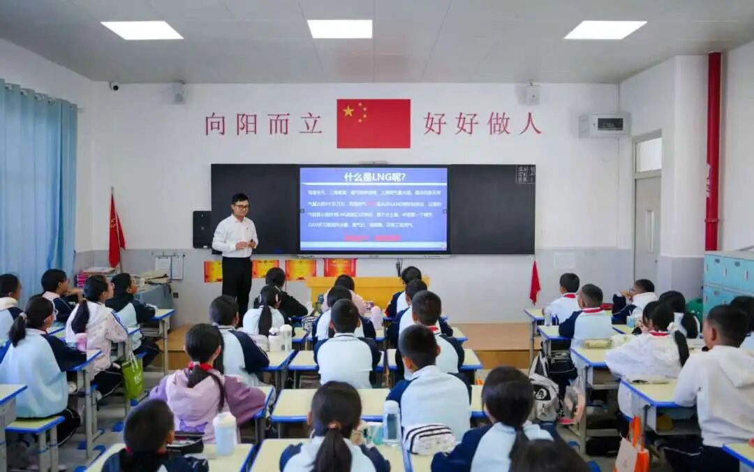 同時,志愿者為94名小學生帶去3堂科普課程,回顧人民海軍發展歷程,厚植孩子們的愛國情懷;精講民用船舶種類,點亮孩子們的探索精神;揭秘LNG船關鍵技術,展現中國“智”造實力,增強孩子們的自豪之感。課程中,志愿者們深入淺出講解,學生們全神貫注學習,同學們感受到中國船舶“智領深藍”的魅力,紛紛提問:護衛艦一次能航行多遠?一艘LNG船能載多少噸液化天然氣?“海上帶貨王”到底有多大?……孩子們展現出對國防和海洋的濃厚興趣。